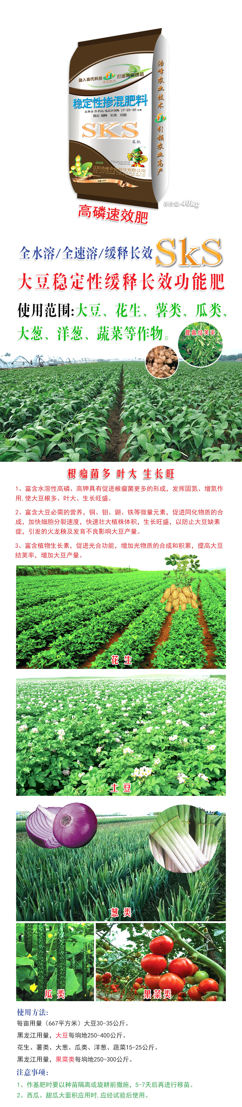 1、富含水溶性高磷、高鉀具有促進(jìn)根瘤菌更多的形成,發(fā)揮固氮、增氮作用,使大豆根多、葉大、生長旺盛。